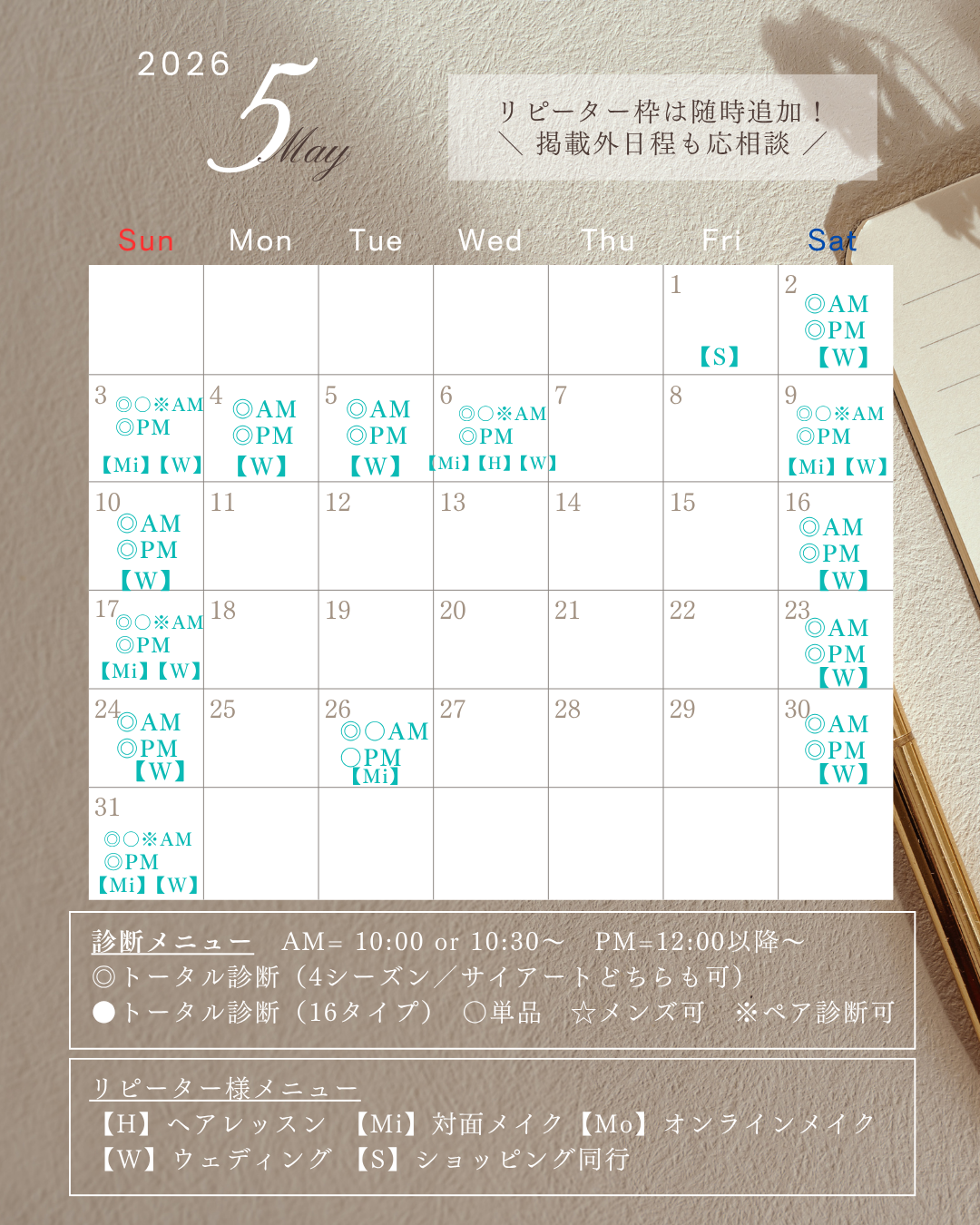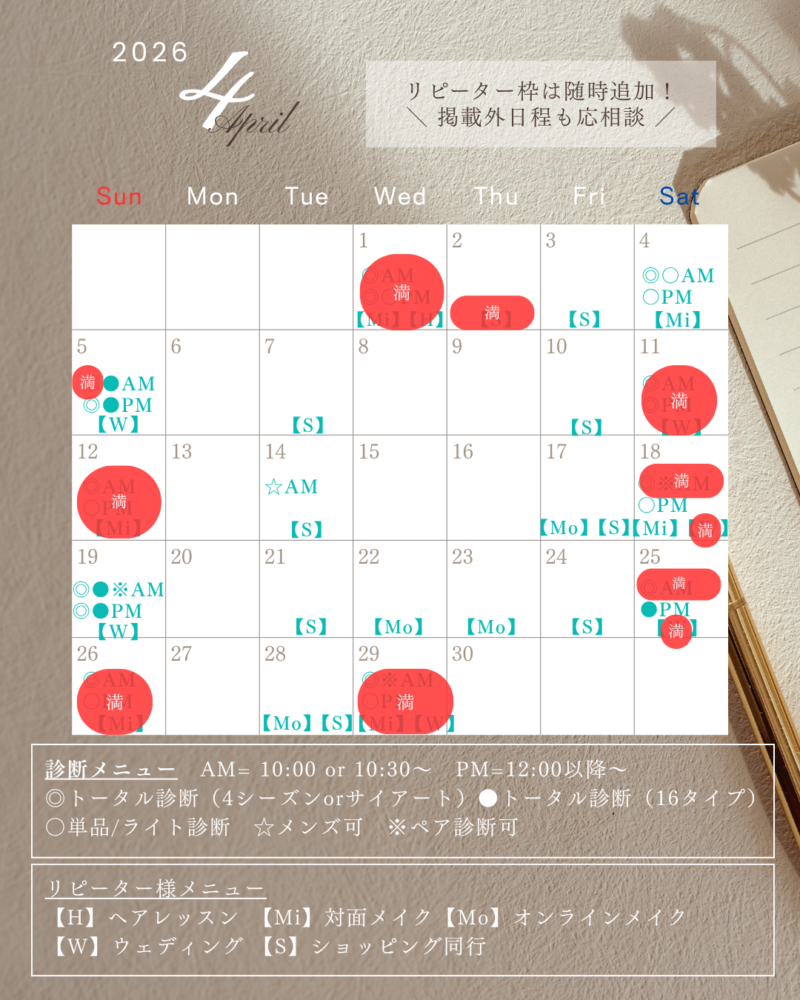 4/1(水)、イメージコンサルティング5月分受付スタートいたしました。