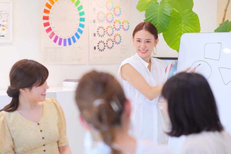 サロンでの各種養成講座のほか、大手百貨店さまや保険会社さまにて、顔タイプ診断®︎の企業研修等の実績もございます。